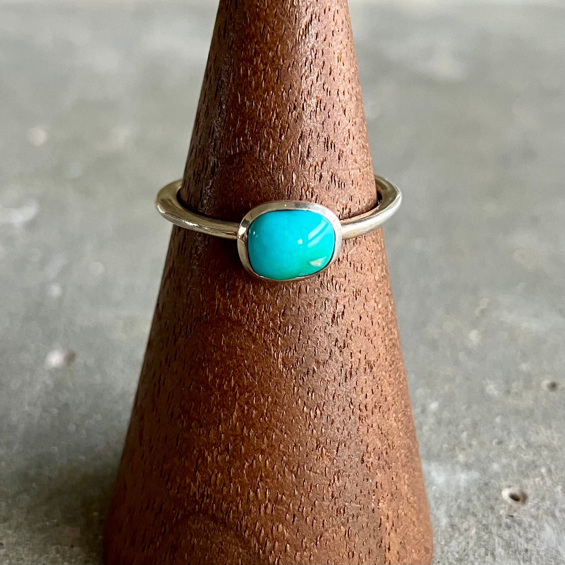 透明感のあるブルーが特徴的なターコイズのリングです。
